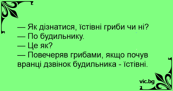 — Повечеряв грибами, якщо почув вранці дзвінок будильника - їстівні.