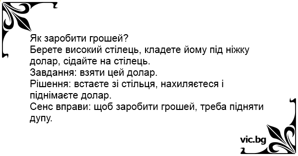 Сенс вправи: щоб заробити грошей, треба підняти дупу.