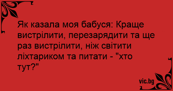 Як казала моя бабуся: Краще вистрілити, перезарядити та ще раз вистрілити, ніж світити ліхтариком та питати - "хто тут?"