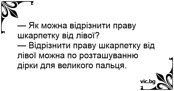 — Відрізнити праву шкарпетку від лівої можна по розташуванню дірки для великого пальця.