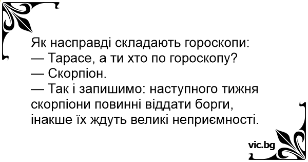 — Так і запишимо: наступного тижня скорпіони повинні віддати борги, інакше їх ждуть великі неприємності.