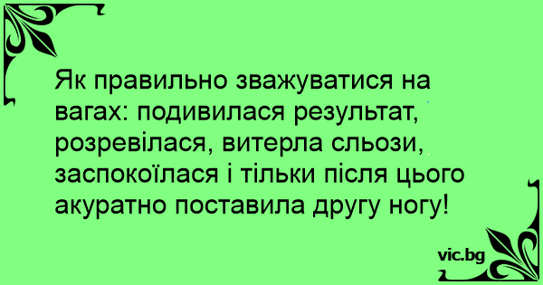 Як правильно зважуватися на вагах: подивилася результат, розревілася, витерла сльози, заспокоїлася і тільки після цього акуратно поставила другу ногу!