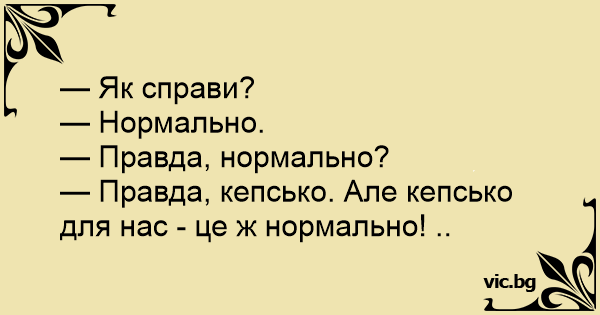 — Правда, кепсько. Але кепсько для нас - це ж нормально! ..