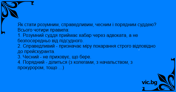 1. Розумний суддя приймає хабар через адвоката, а не безпосередньо від підсудного.