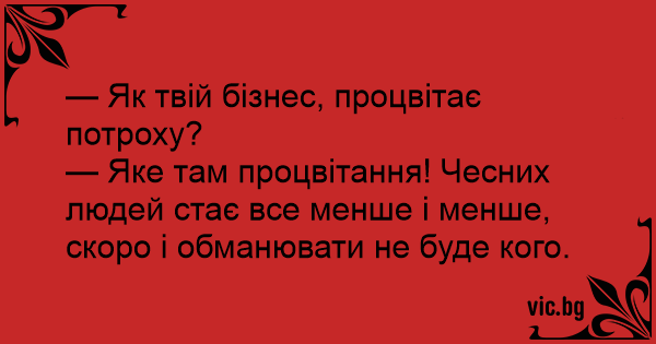 — Яке там процвітання! Чесних людей стає все менше і менше, скоро і обманювати не буде кого.