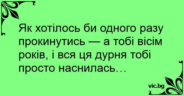Як хотілось би одного разу прокинутись — а тобі вісім років, і вся ця дурня тобі просто наснилась…