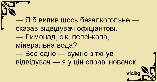 — Я б випив щось безалкогольне — сказав відвідувач офіціантові.