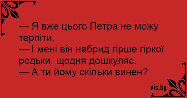 — І мені він набрид гірше гіркої редьки, щодня дошкуляє.