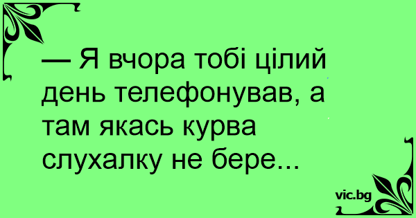 — Я вчора тобі цілий день телефонував, а там якась kуpba слухалку не бере...