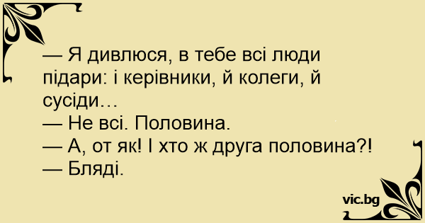 — Я дивлюся, в тебе всі люди підари: і керівники, й колеги, й сусіди…