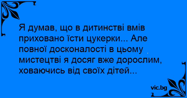 Я думав, що в дитинстві вмів приховано їсти цукерки... Але повної досконалості в цьому мистецтві я досяг вже дорослим, ховаючись від своїх дітей...