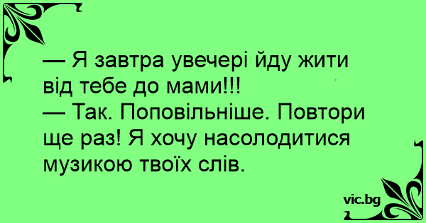 — Я завтра увечері йду жити від тебе до мами!!!