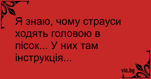 Я знаю, чому страуси ходять головою в пісок... У них там інструкція...