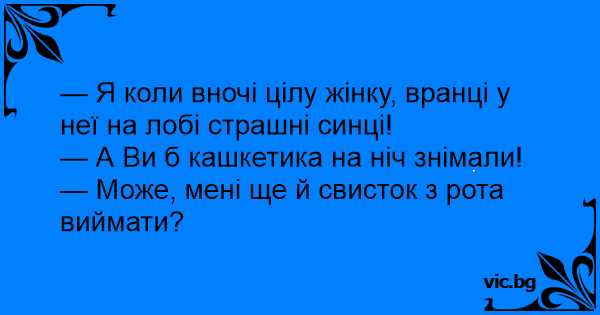 — А Ви б кашкетика на ніч знімали!