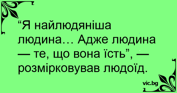 “Я найлюдяніша людина… Адже людина — те, що вона їсть”, — розмірковував людоїд.