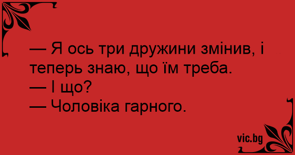 — Я ось три дружини змінив, і теперь знаю, що їм треба.