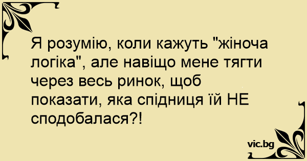 Я розумію, коли кажуть "жіноча логіка", але навіщо мене тягти через весь ринок, щоб показати, яка спідниця їй НЕ сподобалася?!