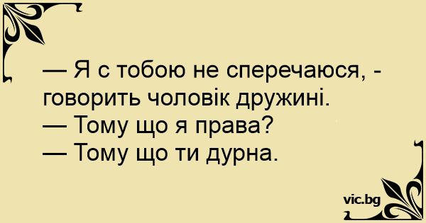 — Я с тобою не сперечаюся, - говорить чоловік дружині.