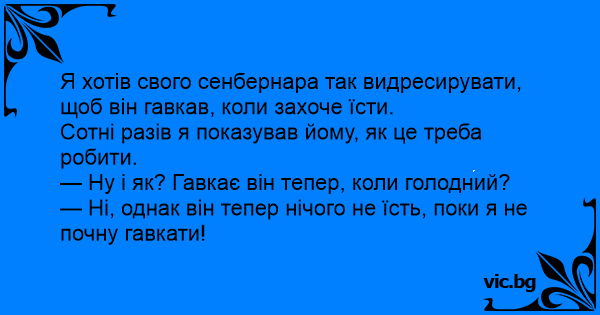 Я хотів свого сенбернара так видресирувати, щоб він гавкав, коли захоче їсти.