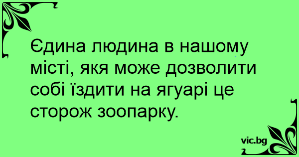 Єдина людина в нашому місті, якя може дозволити собі їздити на ягуарі це сторож зоопарку.