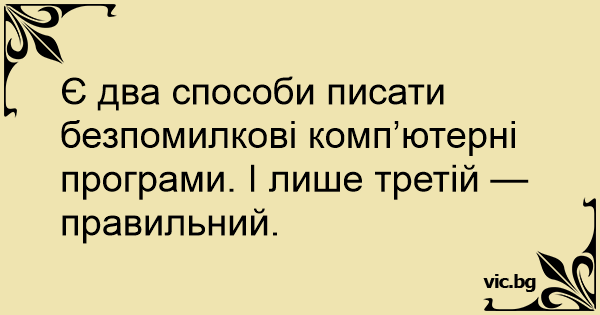 Є два способи писати безпомилкові комп’ютерні програми. І лише третій — правильний.