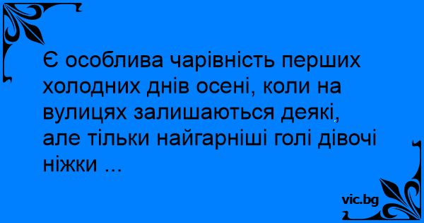 Є особлива чарівність перших холодних днів осені, коли на вулицях залишаються деякі, але тільки найгарніші голі дівочі ніжки ...