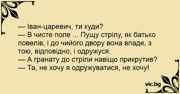 — В чисте поле ... Пущу стрілу, як батько повелів, і до чийого двору вона впаде, з тою, відповідно, і одружуся.