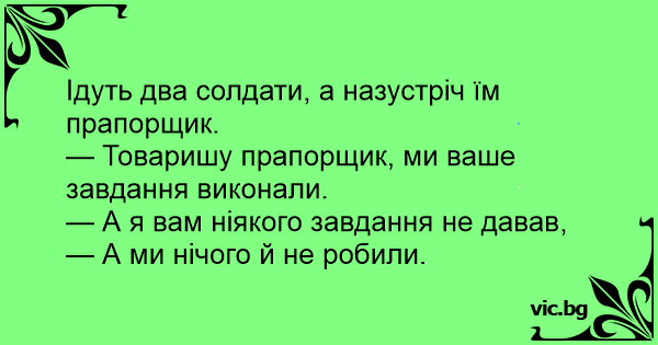 Ідуть два солдати, а назустріч їм прапорщик.