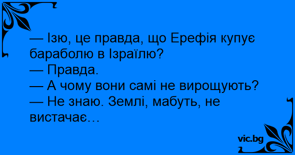 — Ізю, це правда, що Ерефія купує бараболю в Ізраїлю?