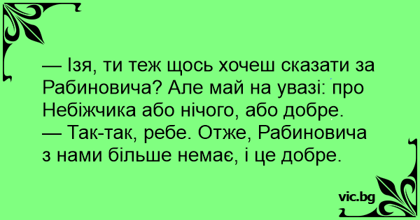 — Ізя, ти теж щось хочеш сказати за Рабиновича? Але май на увазі: про