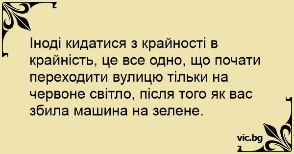 Іноді кидатися з крайності в крайність, це все одно, що почати переходити вулицю тільки на червоне світло, після того як вас збила машина на зелене.