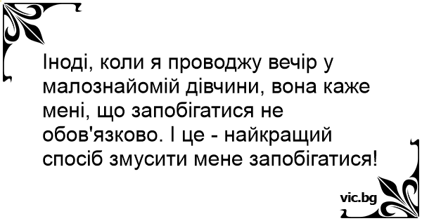 Іноді, коли я проводжу вечір у малознайомій дівчини, вона каже мені, що запобігатися не обов'язково. І це - найкращий спосіб змусити мене запобігатися!