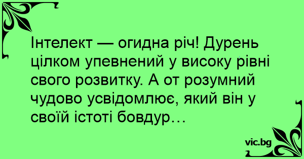 Інтелект — огидна річ! Дурень цілком упевнений у високу рівні свого розвитку. А от розумний чудово усвідомлює, який він у своїй істоті бовдур…