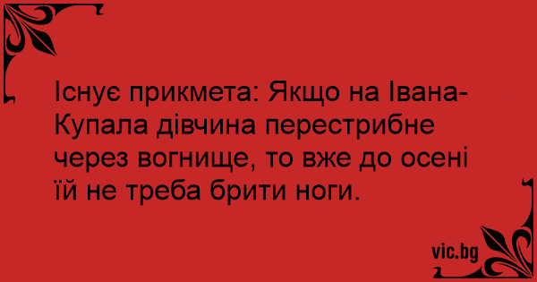 Існує прикмета: Якщо на Івана-Купала дівчина перестрибне через вогнище, то вже до осені їй не треба брити ноги.