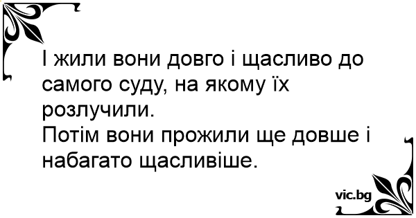 І жили вони довго і щасливо до самого суду, на якому їх розлучили.