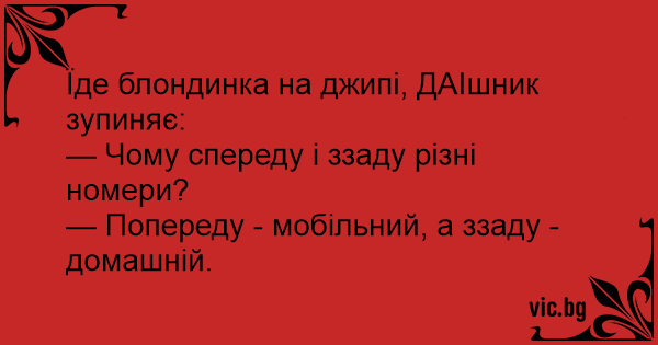 Їде блондинка на джипі, ДАІшник зупиняє: