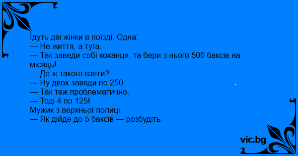 — Так заведи собі коханця, та бери з нього 500 баксів на місяць!
