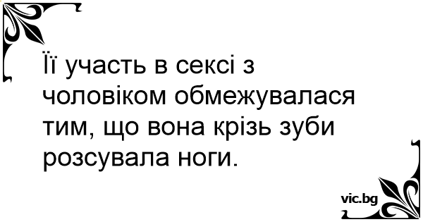 Її участь в сексі з чоловіком обмежувалася тим, що вона крізь зуби розсувала ноги.