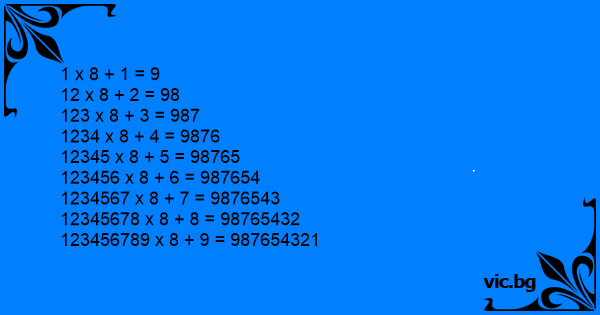12345678 x 8 + 8 = 98765432