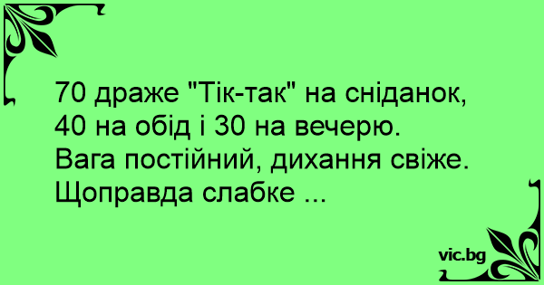 70 драже "Тік-так" на сніданок, 40 на обід і 30 на вечерю.