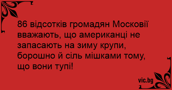 86 відсотків громадян Московії вважають, що американці не запасають на зиму крупи, борошно й сіль мішками тому, що вони тупі!