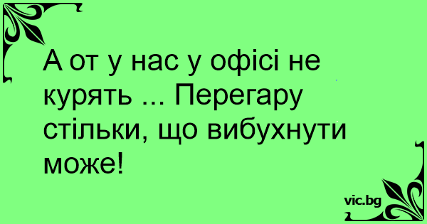 A от у нас у офісі не курять ... Перегару стільки, що вибухнути може!