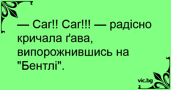 — Car!! Car!!! — радісно кричала ґава, випорожнившись на "Бентлі".