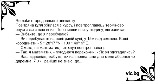 — Схоже, ви математик, - зітхнув повітроплавець.