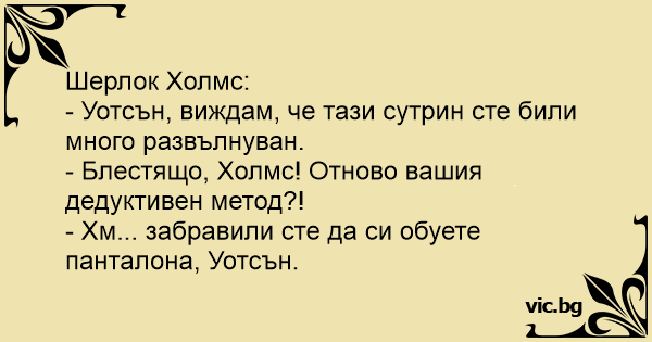 - Блестящо, Холмс! Отново вашия дедуктивен метод?!