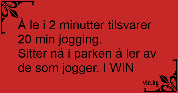 Sitter nå i parken å ler av de som jogger. I WIN