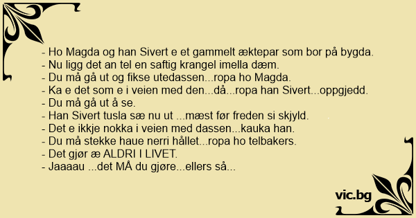 - Но Magda og han Sivert e et gammelt æktepar som bor på bygda.