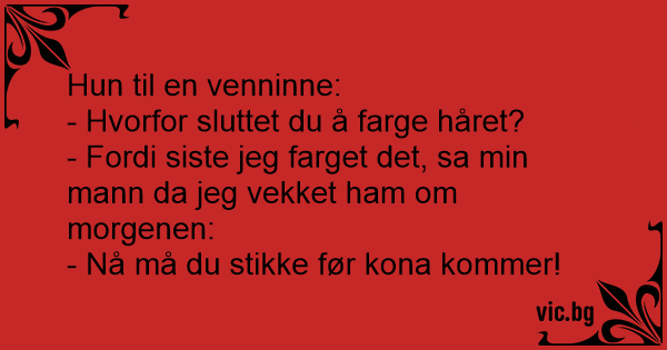 - Fordi siste jeg farget det, sa min mann da jeg vekket ham om morgenen:
