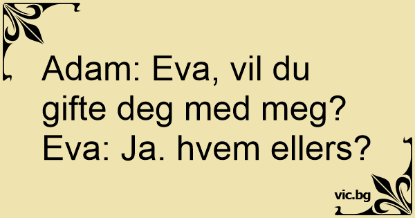 Hørt når Adam spurte Eva om hun elsket han? - Ja, hvem ellers?