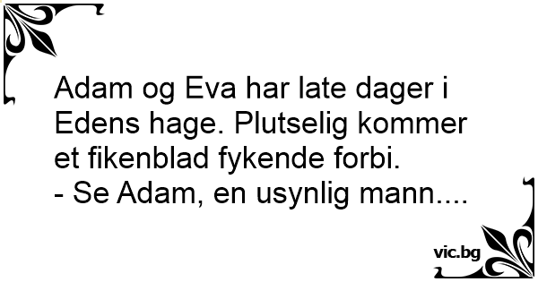 Adam og Eva har late dager i Edens hage. Plutselig kommer et fikenblad fykende forbi.